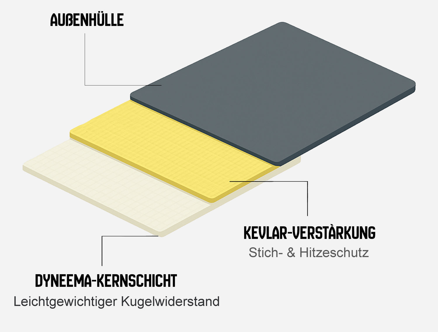 Effektiver Schutz: Hilft das Risiko durch gängige Handfeuerwaffen-Bedrohungen (z.B. 9mm, .357, .44 Magnum) und Sprengfragmente zu reduzieren