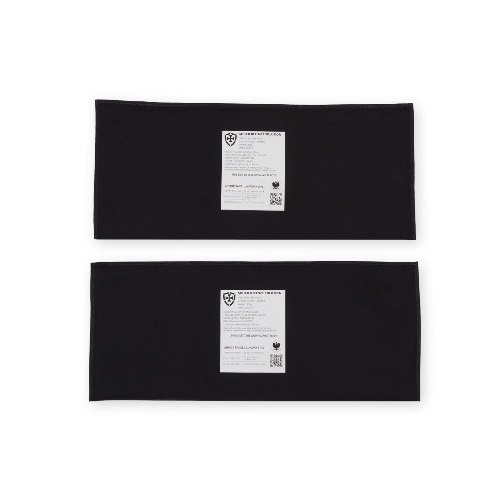 Wählen Sie je nach Einsatzanforderung ultraleichtes UHMWPE oder den robusteren UHMWPE + Aramid Hybrid. Beide Konfigurationen bieten zuverlässigen Schutz gemäß TR SK1 / VPAM BSW Klasse 3 in einem flexiblen 4-teiligen Einlagen-Set (Front/Rücken + Seiten), das speziell für die M-TAC Sturm Gen.II Elite Plattform ausgelegt ist.